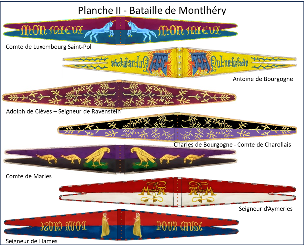| Planche II - Etendards de l'armée bourguignone d'après les mémoires de Haynin |